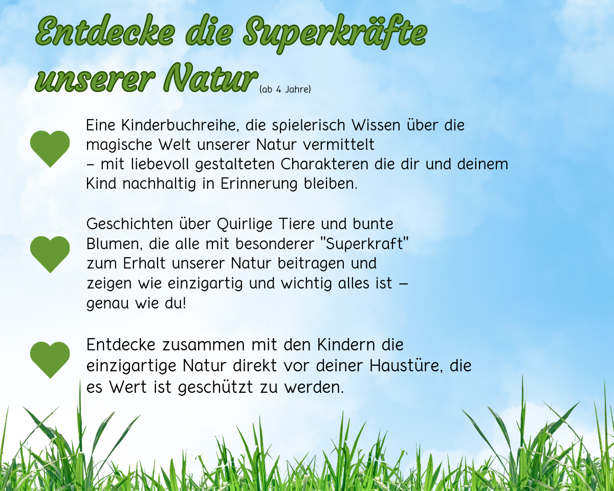 Du wünscht dir für die Kinder, das Verständnis die Natur schützen zu wollen? Meine Kinderbücher unterstützen dich und die Kinder dabei, die Wunder der Natur direkt vor deiner Haustür zu entdecken und kennenzulernen. 🌱✨