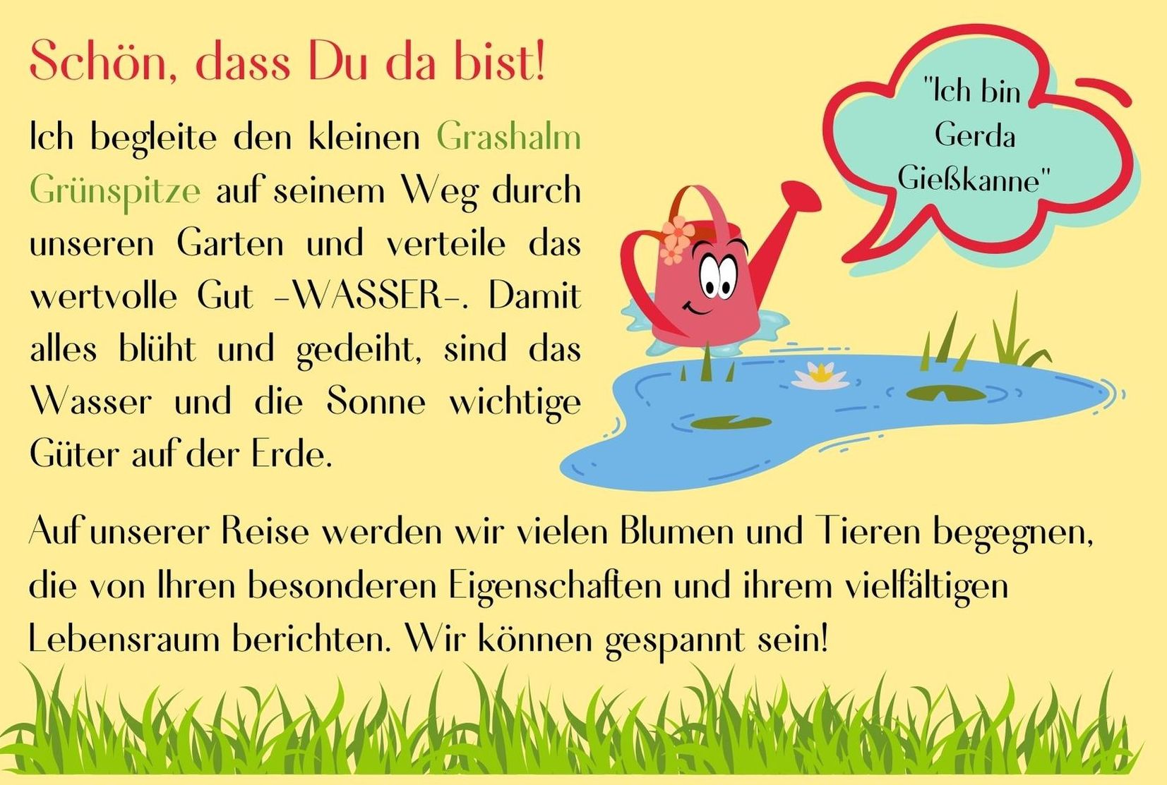 Komm mit auf die Reise durch den Garten und entdecke mit Grashalm Grünspitze und Gerda Gießkanne die Natur vor deiner Haustüre🌱🌸