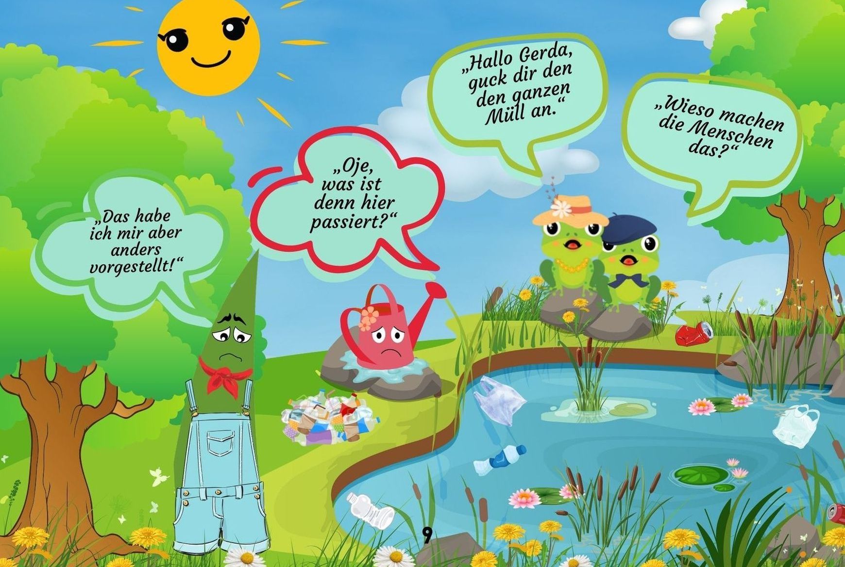 Grashalm Grünspitze und seine beste Freundin Gerda Gießkanne sind auf ihrer Reise durch den Garten endlich am Gartenteich angekommen. Doch hier ist alles voller Müll. Was ist passiert? Sie treffen auf Lilly Libelle, die ihre Hilfe braucht. Und nicht nur der Müll, sondern auch noch andere Gefahren bedrohen das Leben am Teich. Werden sie es schaffen, den Teich zu einem sicheren Zuhause für alle zu machen?